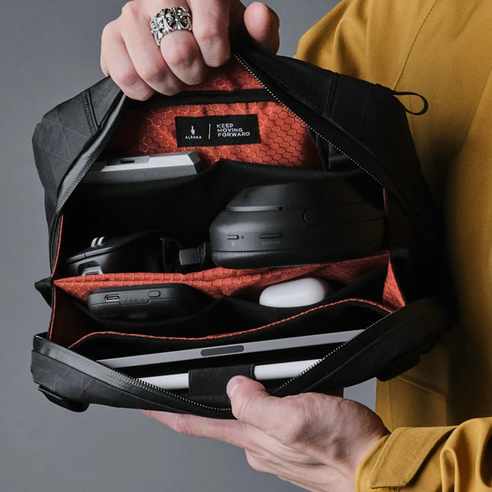 Versatility meets compact design in the Mini – a dual-purpose organizer that transforms from a tech storage solution to a convenient everyday sling bag. Perfect for essentials like your smartphone, wireless earbuds, or compact camera, this nimble carrier keeps your gear secure and accessible while leaving your hands free to tackle whatever comes your way.