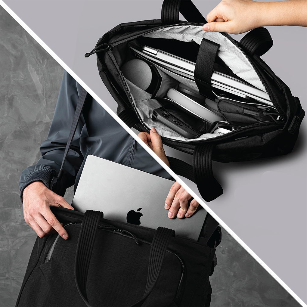 The Bravo Tote V2 is an evolution of a proven design. Lighter fabric reduces bulk, woven shoulder straps improve all-day comfort, and a smartly organized interior keeps your laptop, bottle, books, and essentials exactly where you need them.