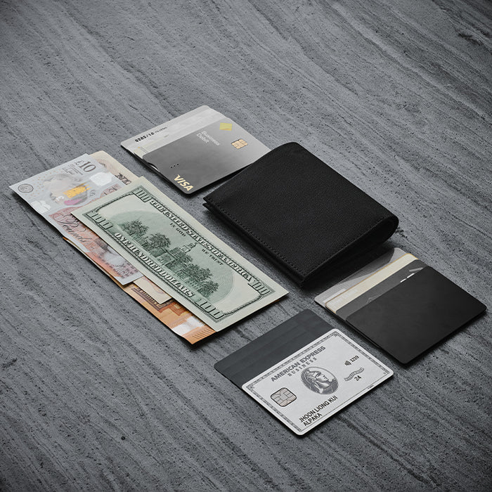 With the addition of a dedicated cash sleeve, you can now carry your spare cash securely wherever you go. No more fumbling through pockets or bulky wallets to find your bills. Featuring a new magnetic closure, this wallet ensures that your essentials stay safe and secure, all while maintaining a sleek and streamlined silhouette when closed.