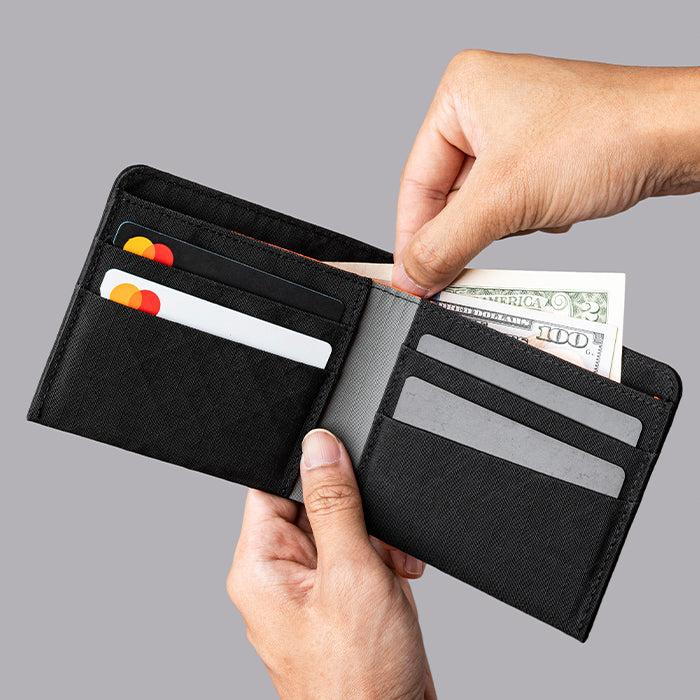 The ARK Classic Wallet takes the familiar bifold and makes it better with smart engineering. We've angled the primary card slot so you can actually grab your card when you need it, and added a secure magnetic closure to keep everything in place. Choose between our tough, weather-resistant and lightweight Axogrid or X-Pac fabrics. The bill section fits any worldwide currency, and we've tucked a hidden card slot inside for those cards you want to keep extra secure. It's what a wallet should be; thoughtfully designed for real-world use.