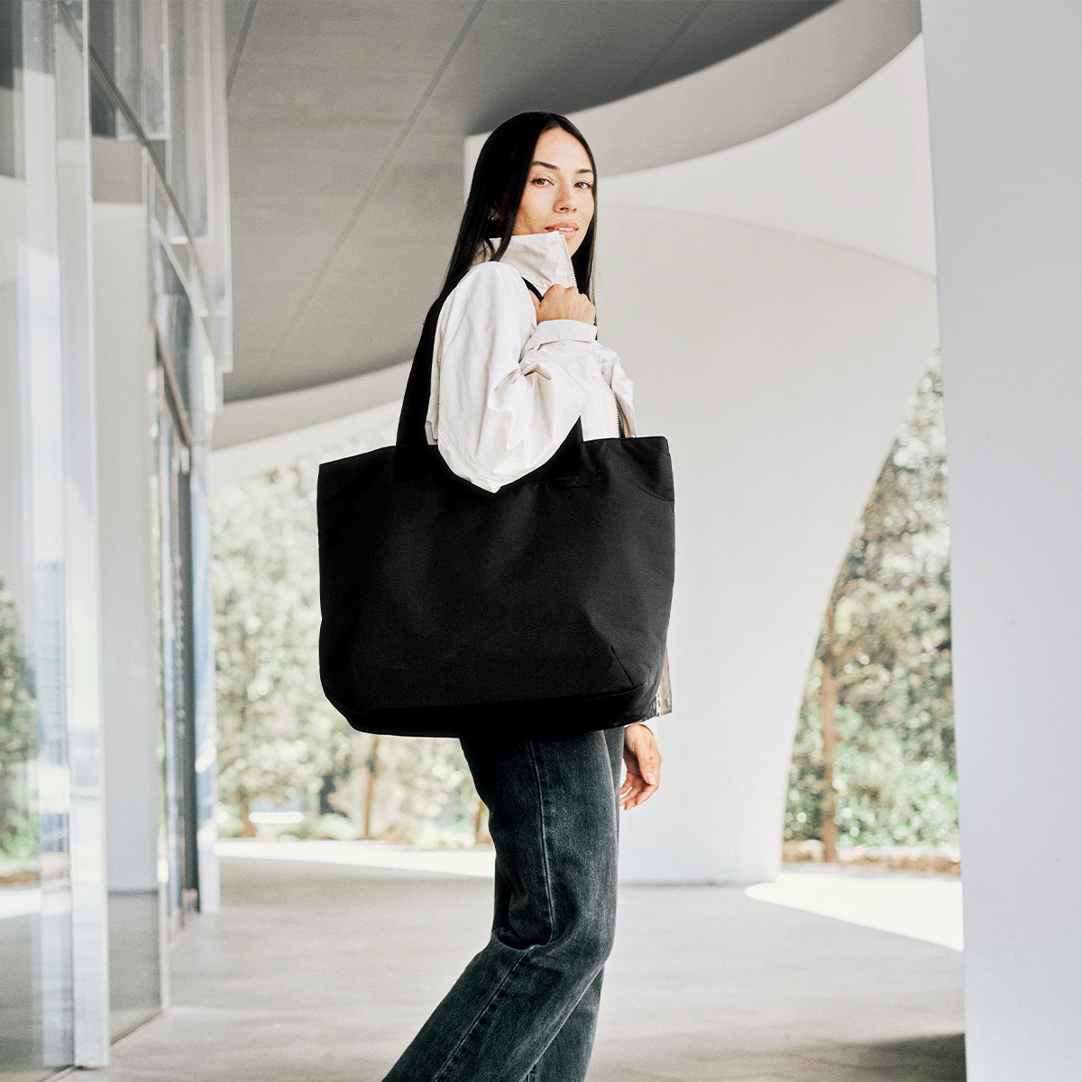 Made from durable performance fabric, this bag shrugs off daily wear and tear better than traditional cotton or canvas totes. Its clean, considered design fits seamlessly into any setting, from the office to the beach.