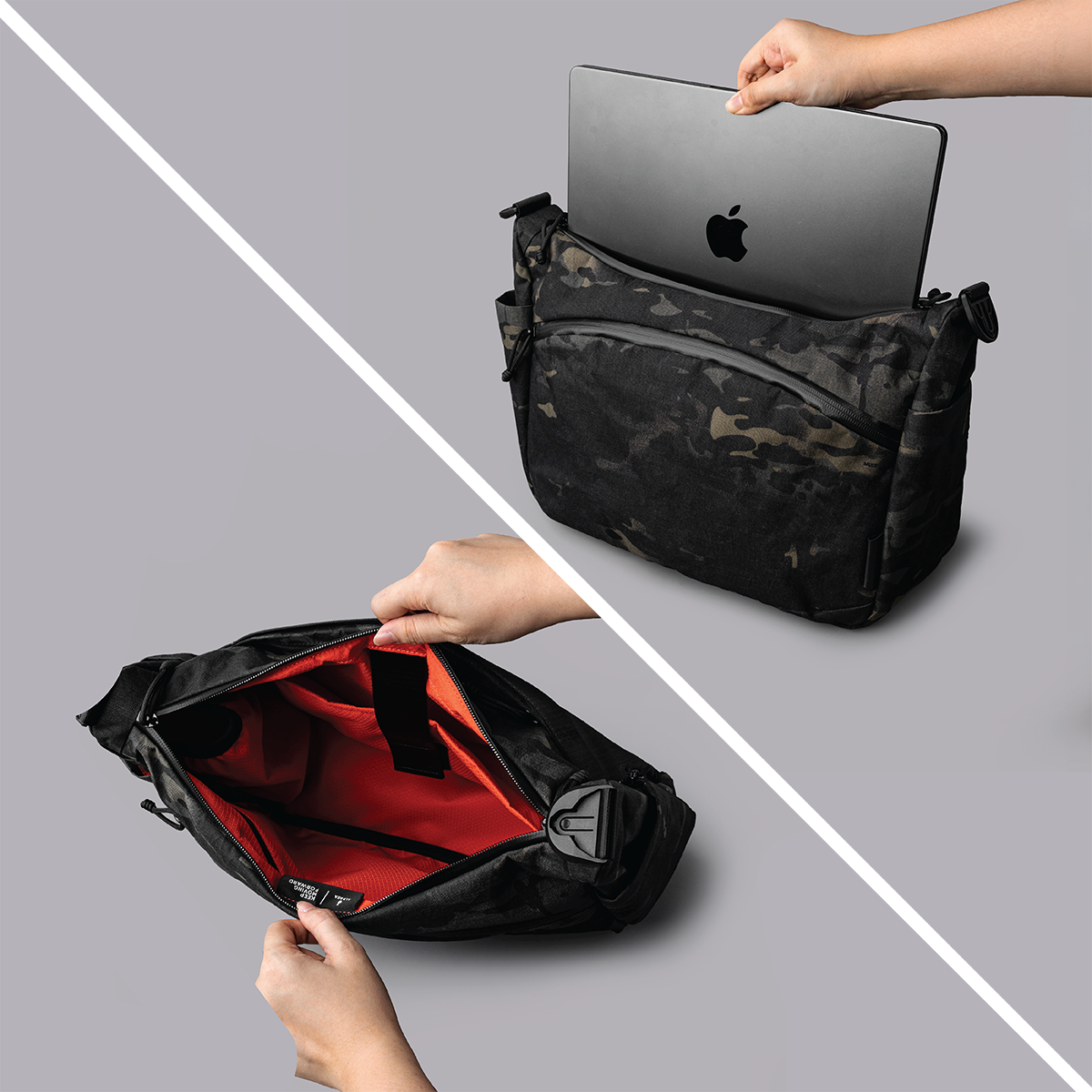 The limited-edition Flight Satchel in tactical Multicam® Black brings thoughtful design to your daily routine and travels. A padded shoulder strap keeps you comfortable all day. The dedicated 13" laptop compartment secures your device, while the divided front compartment organizes your essentials. Made for commutes that count, adventures that inspire, and flights that never tire.