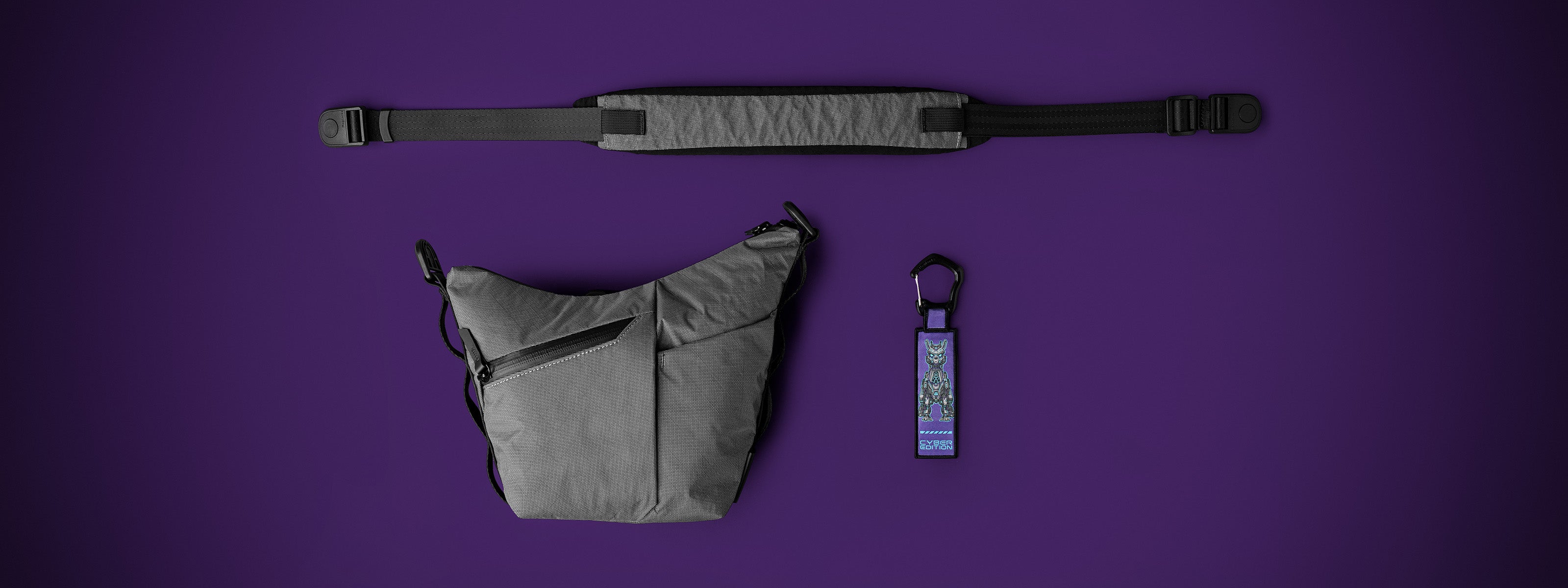 Stay in motion. The Flow Satchel - Cyber Edition is designed to keep pace with your day in sleek Gray, featuring a vivid Purple interior and an exclusive mecha-inspired flight tag.