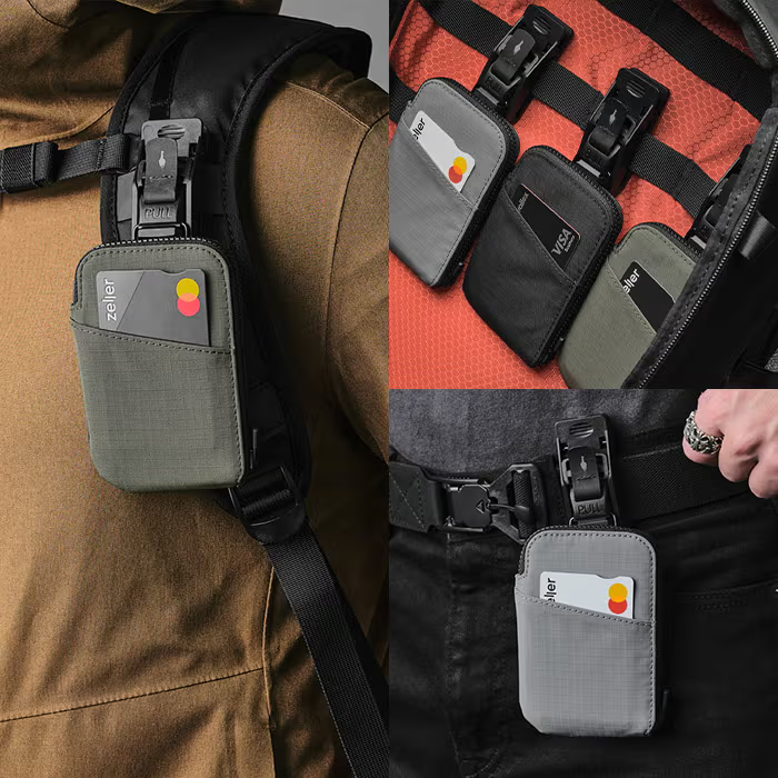 And here's the best part - it's compatible with our HUB Ecosystem, allowing you to easily connect it to your backpack strap, sling, or messenger bag for quick access. Prefer a hands-free option? Attach it to your belt and enjoy maximum accessibility while carrying minimal gear.