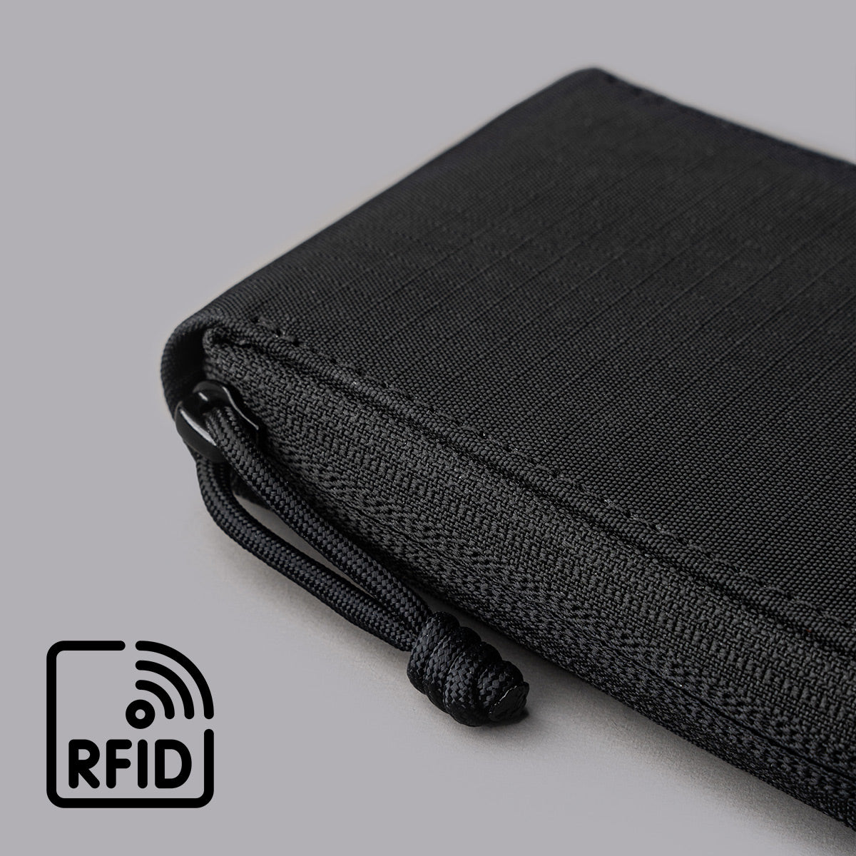 The Zip ID Wallet’s front-facing window keeps your credentials always on display, while eight interior slots neatly organize 10-plus cards. RFID shielding and our water-resistant Axogrid™ laminate add everyday peace of mind without adding bulk.