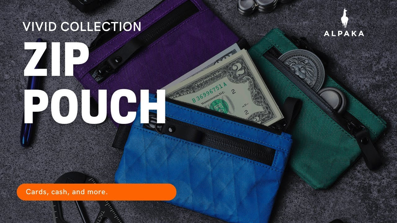 Add some color to your everyday carry! Stow your cards and cash quickly in our smallest pouch. Designed for those who want to carry as little weight as possible, the Zip Pouch has secure storage space for frequently used items such as credit cards and bank notes. With an extra pouch for coins or smaller items like your spare SIM card, you'll find room even for business cards too!