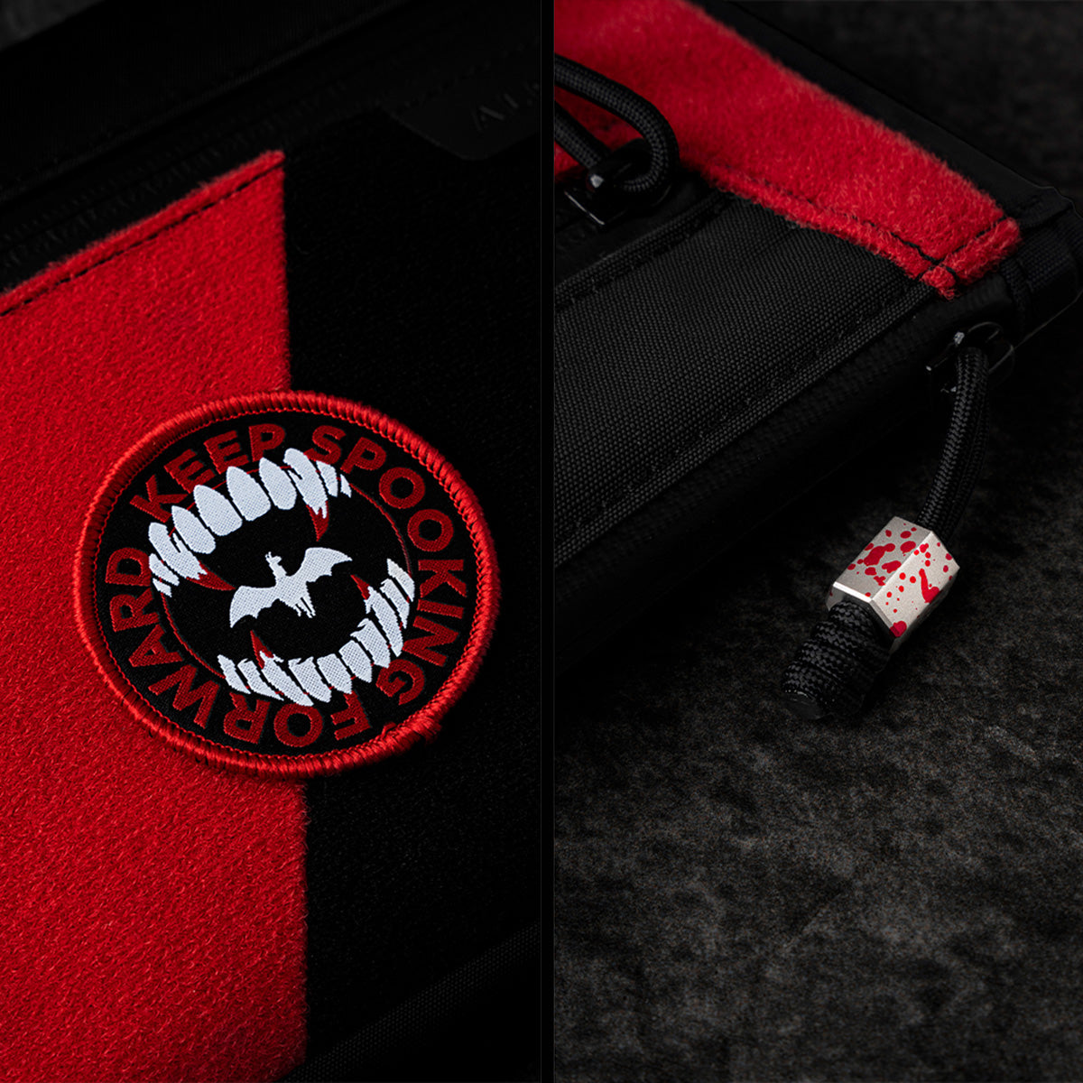 The limited Zip Pouch Max V2 – Vampire Edition awakens in Black and Red, with a chilling ALPAKA Vampire Edition patch and blood-stained anodized zipper pull beads.