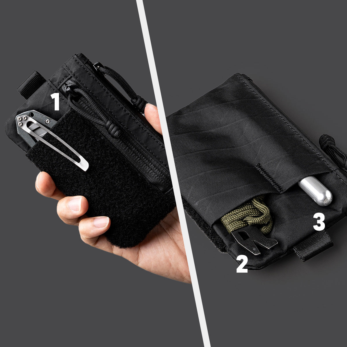 The Zip Pouch Pro – Hook & Loop is a compact pouch that keeps your EDC essentials in order. Stow your cards and cash in the main section, and stash coins or other small items in the extra zip pocket. Three external slots keep small gear like a multitool, flashlight, or lighter easy to access.