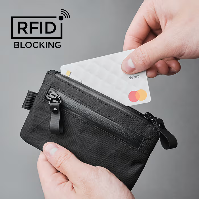 Stow your cards and cash quickly in our smallest pouch. Designed for those who want to carry as little weight as possible, the Zip Pouch has secure storage space for frequently used items such as credit cards and bank notes. With an extra pouch for coins or smaller items like your spare SIM card, you'll find room even for business cards too!